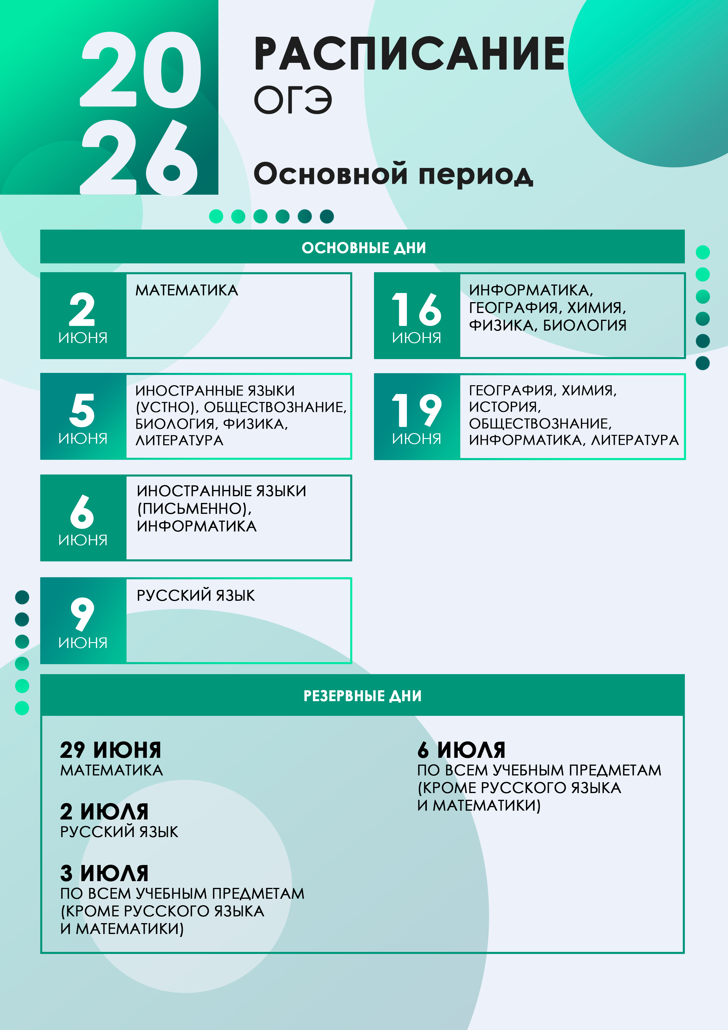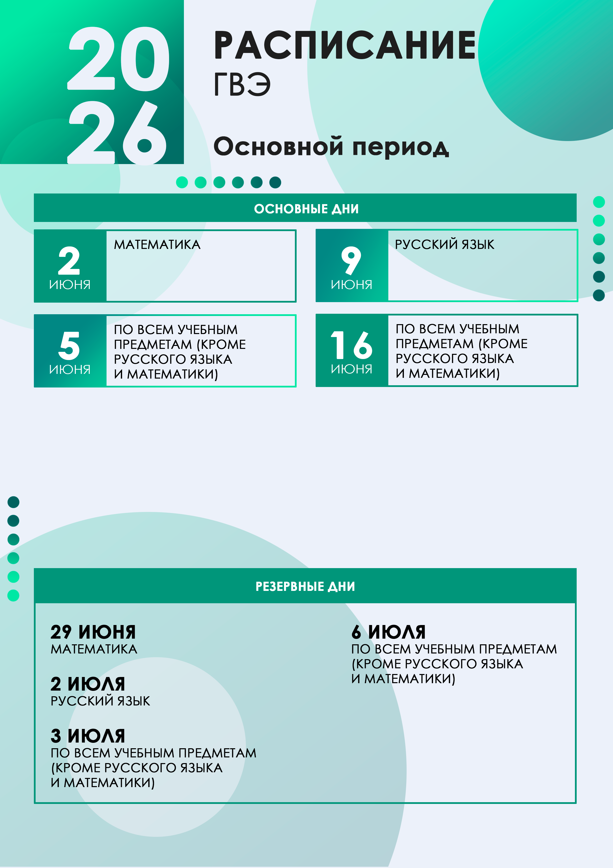РАСПИСАНИЕ ГОСУДАРСТВЕННОЙ ИТОГОВОЙ АТТЕСТАЦИИ - 2026 года
